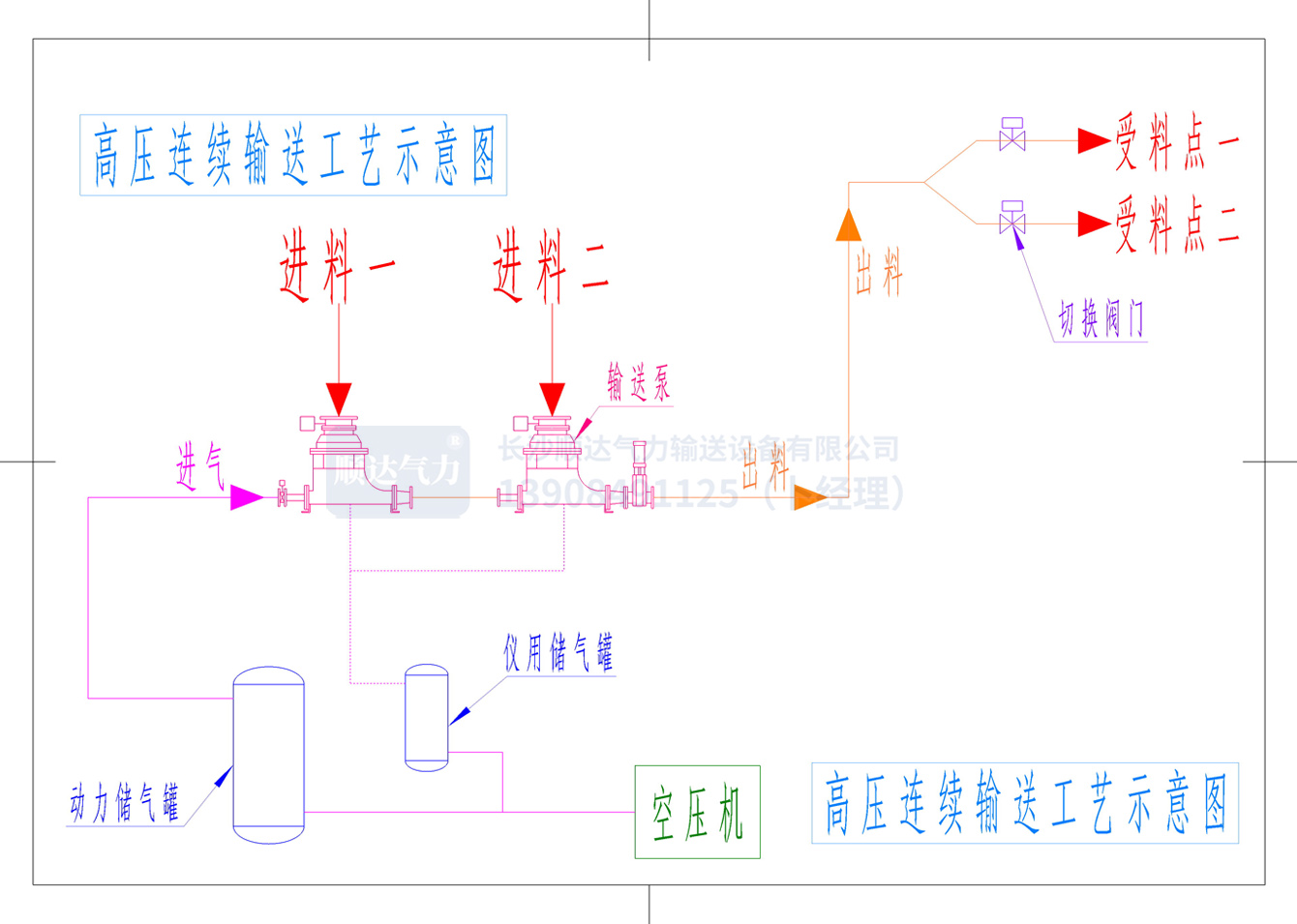 A系列高壓連續輸送泵,可采用單臺布置運行、多臺串聯布置運行、多臺并聯布置運行,輸送系統的動力氣源一般采用空壓機,如果業主方有滿足的空壓機氣源,就能在工程造價上更能體現其投資省、而且運行成本低,自動化程度高,不需要人工值守。